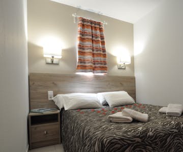 Studio with 1 double bed measuring Queen Size (160 x 200) and a sofa.